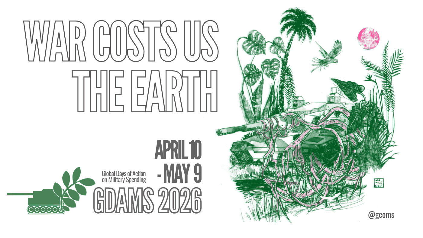 The 15th edition of the Global Days of Action on Military Spending (GDAMS) will take place from April 10 to May 9, 2026, including: