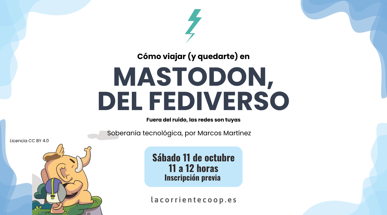 En este taller aprenderás a usar Mastodon, una de las redes más activas del Fediverso, entenderás cómo funcionan los nodos y conocerás por qué estas herramientas son clave para construir un modelo digital más justo, abierto y ciudadano.